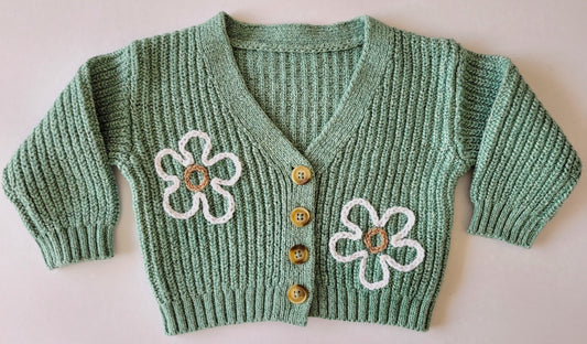 Dizzy Flower Cardigan in Spring Teal